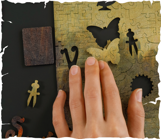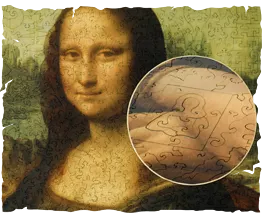 The puzzle has a premium-quality packaging: a lacquered wooden box and a craft paper with Da Vinci’s drafts and sketches. Each box contains a mini-easel with a copy of the painting — your clue for assembling the puzzle.