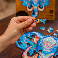 Each puzzle in the Animals series comes in four sizes. The bigger the size — the harder it is to build the puzzle and the more interesting the story inside it gets. The smallest ones are like trailers to awesome movies, while the Royal Size puzzles will take you on a journey with their own narratives and plot twists. The cuts of each size of each puzzle are unique and different. They are made by creative designers to take you deeper into the story and bring you as many amazing discoveries as possible.